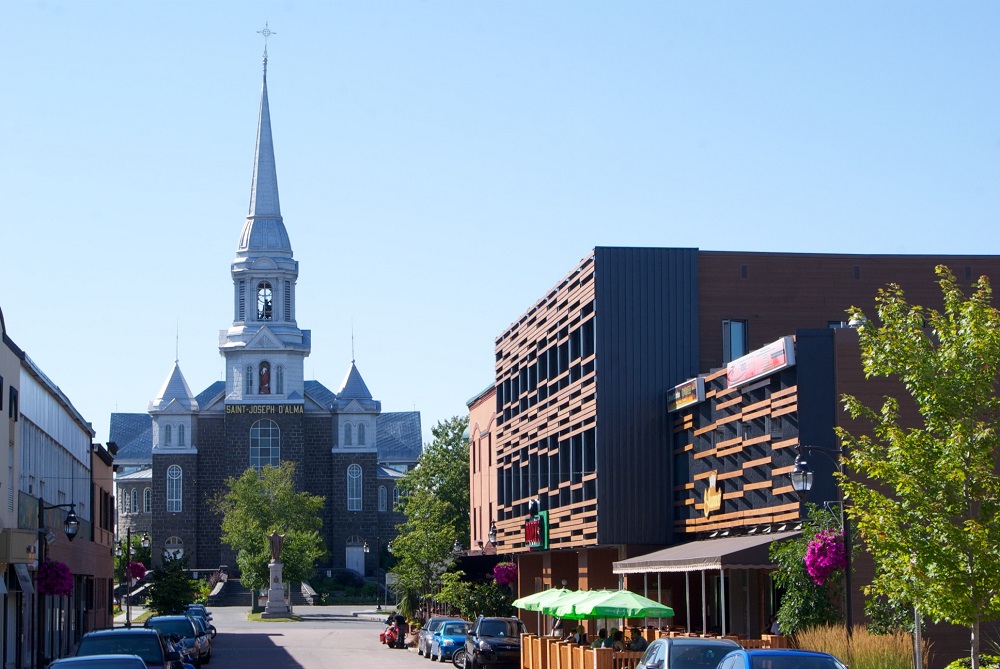 Damase Boulanger et les premiers colons s'installent sur l'île Sainte-Anne en bordure de la Petite-Décharge en 1856. Au début du XXe siècle, la ville s'industrialise principalement dans le secteur des pâtes et papiers. Plus tard autour de la Seconde Guerre mondiale, on y construit la première usine de production d'aluminium ce qui lui permet de devenir rapidement la principale ville du Lac Saint-Jean. Le nom Alma fait référence à la Bataille de l'Alma, lors de la guerre de Crimée. L'Alma est un fleuve de cette région qui aujourd'hui est située en Ukraine. Le mot « Alma » signifie « pomme » dans les langues turco-tatares.